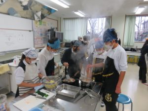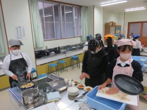 HOME > 教育活動 > イベントギャラリー(校長室ブログ) > 【6年】家庭:調理実習 【6年】家庭:調理実習 入力日2025年11月25日 閲覧数120 11月26日は6年2組さんが家庭科の調理実習を行っていました。 マッシュポテトやきんぴら炒め、ナムルなど献立から考えた料理を、班で協力して作っていました。とってもおいしかったです⭐ 前へ 一覧へ戻る 次へ