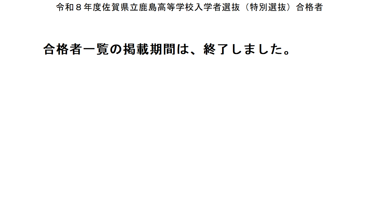 令和8年度特別選抜合格者発表