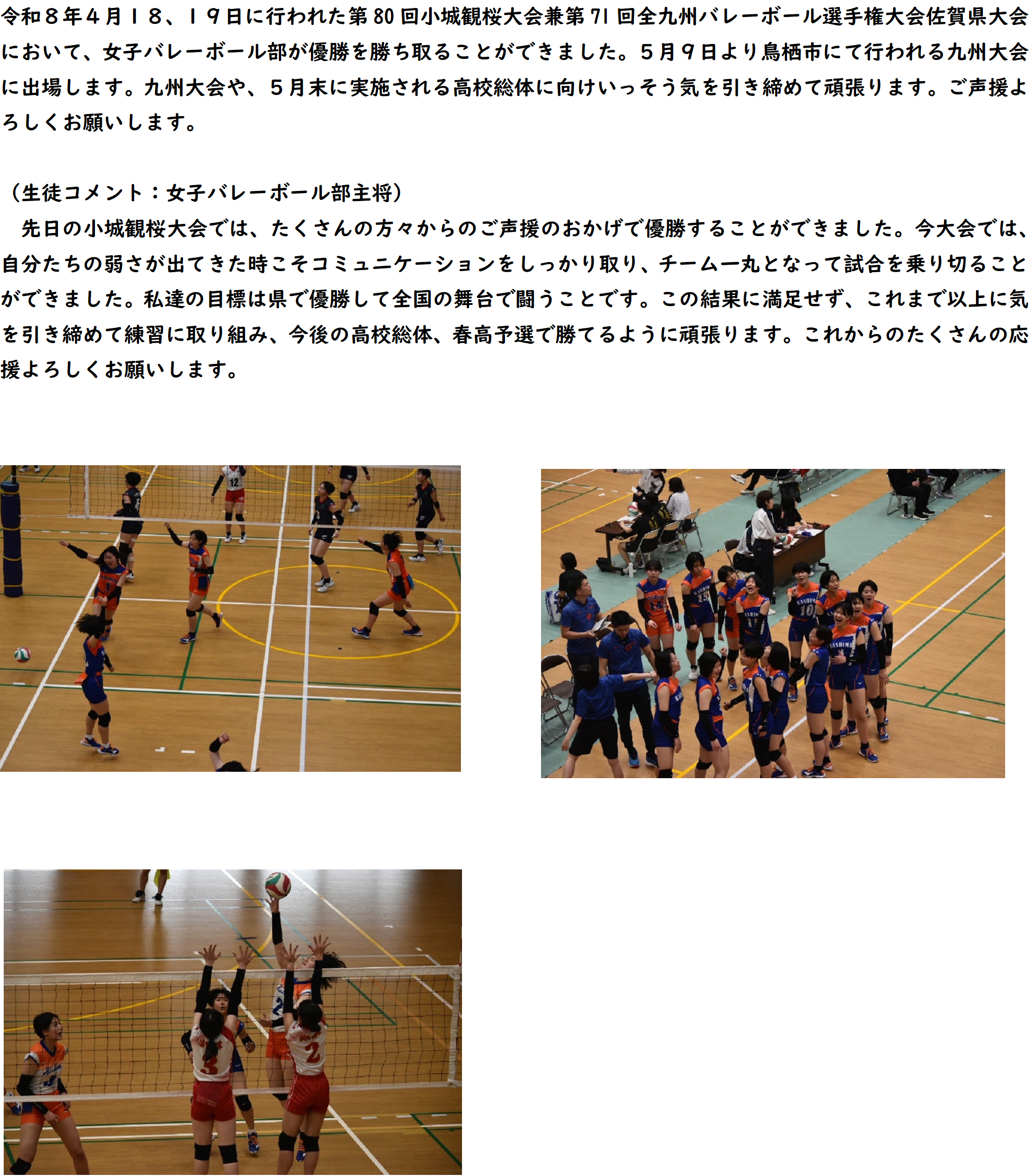 HOME > 部活動 > 入賞おめでとう! 入賞おめでとう! 入賞おめでとう! すべて タイトル 内容 バレーボール部女子優勝! 県高校総体 結果速報! 弓道部『男女優勝』おめでとう! 囲碁同好会『全国大会出場』おめでとう! 囲碁同好会『完全優勝!』 ソフトボール部『九州大会出場!』 女子バレー部『県第3位!』 1