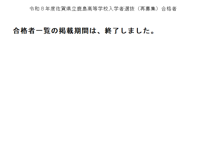令和8年度再募集合格者発表