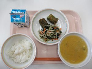 HOME > お知らせ > 今日の給食 > 10月7日(月) 10月7日(月) 入力日2019年10月7日 閲覧数97 今日の給食は、 ご飯・牛乳・ちくわの磯辺揚げ・もやしのごま酢和え ・五目みそ汁 でした♪ 前へ 一覧へ戻る 次へ