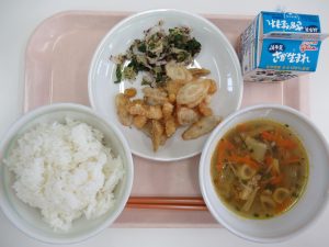 HOME > お知らせ > 今日の給食 > 6月3日(水)よく噛んで、味わって食べよう! 6月3日(水)よく噛んで、味わって食べよう! 入力日2020年6月3日 閲覧数168 今日の給食は、 ごはん・牛乳・いかとごぼうのかみかみ揚げ・野菜のしそ和え・沢煮椀でした♪ 明日は、虫歯予防の日です♬ よく噛んで食べることは、食べ物を飲み込みやすくするだけではなく、 心や体の健康にもかかわる大切なことです♬ 前へ 一覧へ戻る 次へ
