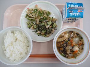 HOME > お知らせ > 今日の給食 > 6月10日(水)よく噛んで味わって食べよう! 6月10日(水)よく噛んで味わって食べよう! 入力日2020年6月11日 閲覧数201 今日の給食は、 ごはん・牛乳・中華丼(具)・青のりポテトビーンズ・三色和えでした♪ じゃがいもの中のビタミンCは、でんぷんに守られて加熱しても壊れにくいそうです♬ ビタミンCの働きは、かぜを防いだり疲労の回復、肌荒れなどに効果があります♬ 前へ 一覧へ戻る 次へ