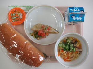 HOME > お知らせ > 今日の給食 > 8月27日(木)ものを大切にしよう! 8月27日(木)ものを大切にしよう! 入力日2020年8月27日 閲覧数280 今日の給食は、 ミルクパン・牛乳・揚げ魚のラビゴットソース・たまごとおくらのスープでした♪ ラビゴットソースとは、刻んだ野菜をドレッシングで和えたソースで揚げた魚などにかけて 食べることが多いです♬ 【ラビゴット】=フランス語 ・元気を出させる、回復させる、という意味があります♬ 前へ 一覧へ戻る 次へ