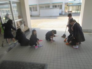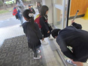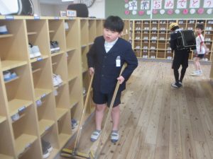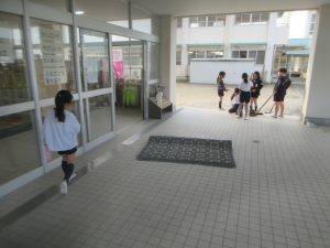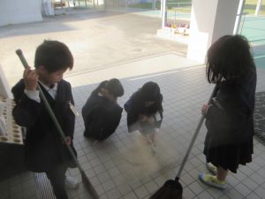 この日も、朝からたくさんの子どもたちが児童玄関を掃除してくれました。