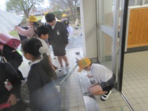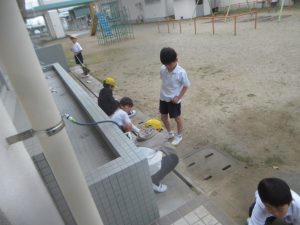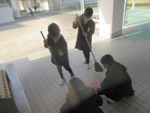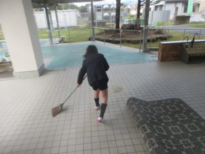 体育館に続く渡り廊下を掃除してくれている子どもたちもいました。