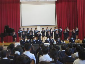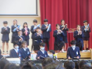 5年生は、最初に器楽合奏を発表しました。子どもたちの動きもつけてあり、とてもかっこよかったです。