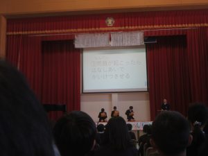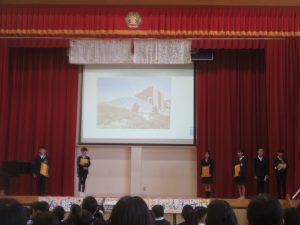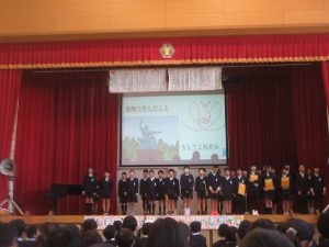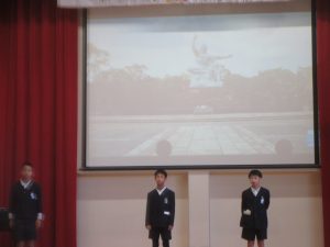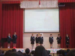 6年生は、長崎修学旅行での平和学習を通して学んだことを紹介してくれました。