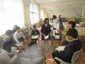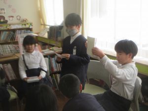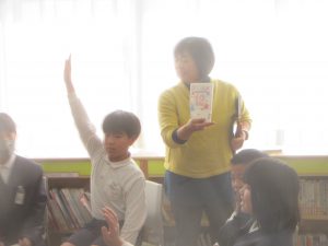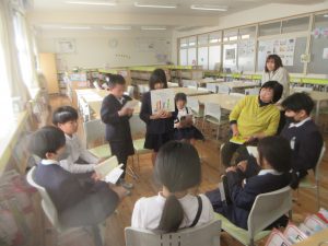 12月19日(金)の昼休み、金立小学校の図書室では、ビブリオバトルを行いました。今回もいろいろな学年の子どもたちが参加して、自分がお薦めの本を紹介し合っていました。