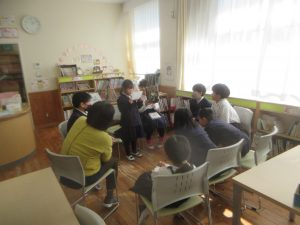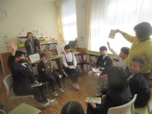 司書の内田先生、図書担当の末次先生のコーディネートで幅広い学年の子どもたちが参加して、楽しくお気に入りの本の紹介をしていました。