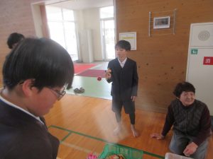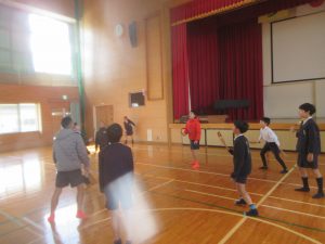 2月25日(水)の昼休みは、今年度最後の昔遊びの日でした。この日は高学年対象でしたので、5年生と6年生が昔遊びを楽しんでいました。