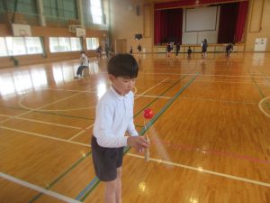 6年生は小学校生活で最後の昔遊び体験となりました。高学年の子どもたちは、それぞれに自分たちのペースで楽しんでいるようでした。
