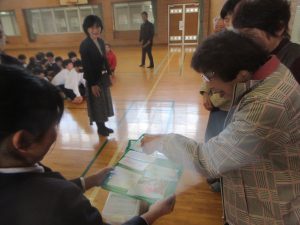 6年生の子どもたちが手づくりのしおりを地域の方にプレゼントしていました。