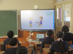 姿勢が心や体に大きな影響を与えていることについて学び、自分から進んで正しい姿勢を心がけることができるようになることを目指して、学習をしました。