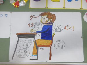 現在、児童玄関には、正しい姿勢についての掲示物が貼られています。