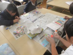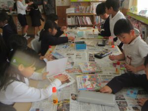 出来上がったしおりは図書委員会の子どもたちが集めて、仕上げをしてくれるのでしょう。
