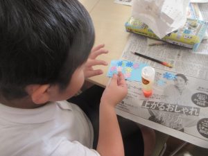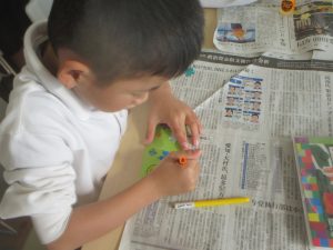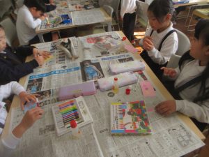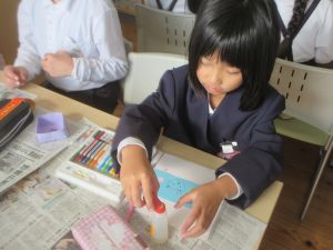 子どもたちは真剣な面持ちで、しおりづくりに取り組んでいました。
