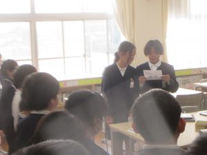 図書委員会の活動について、紹介していますね。4年2組の子どもたちも真剣に聞いていますね。
