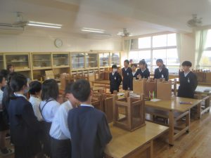 こちらは4年2組の子どもたちが環境美化委員会の見学をしている様子です。