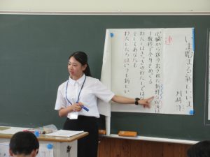 筑紫女学園大学からの教育実習生 原田先生の3回目の授業が9月21日(木)の第3校時に行われました。