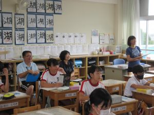 6年2組の学級担任 岡先生や、真島教頭先生、指導教諭の横尾先生も参観してくれていました。