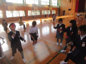 HOME > 学校紹介 > イベントギャラリー > 昔あそび(低学年) 昔あそび(低学年) 入力日2026年1月29日 閲覧数49 1月28日(水)の昼休みは、低学年の子どもたちの昔遊び体験でした。 体育館や体育館前では、子どもたちが楽しく昔遊びの体験をしていました。 【けん玉】 【ゴムとび】 【羽根つき】 【おはじき】 【お手玉】 1年生や2年生の子どもたちは、楽しそうに昔遊びを体験していました。 ご指導に来ていただいた地域のみなさん、ありがとうございました。 前へ 一覧へ戻る 次へ