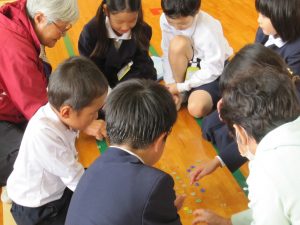 HOME > 学校紹介 > イベントギャラリー > 昔遊び体験(1年生) 昔遊び体験(1年生) 入力日2025年11月6日 閲覧数92 11月4日(火)の3時間目と4時間目に、1年生は昔遊び体験を行いました。金立町社会福祉協議会の方々の協力を得て、子どもたちはいろいろな体験をしていました。 【けん玉】 【缶げた】 【おはじき】 【竹とんぼ】 【こま回し】 【羽根つき】 【お手玉】 おかげさまで、いろいろな昔遊びを体験することができて、とてもよかったです。 前へ 一覧へ戻る 次へ
