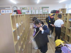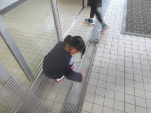 玄関ドアのレールの砂をきれいに掃き、「先生、指でとったほうがきれいになりますよ!」と頑張ってくれている子どももいて、本当に感心しました。