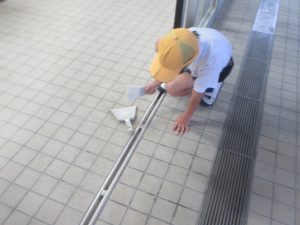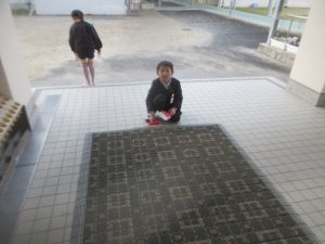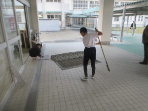 マットをはがして、その下をきれいに掃いたり、金網を外してたまった砂を取り除いたり、傘立てをどけて、傘立ての裏側にたまったごみを掃くなど、大掃除さながらに朝から頑張ってくれていました。