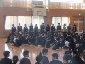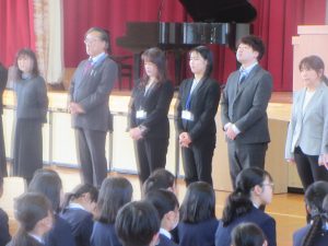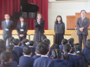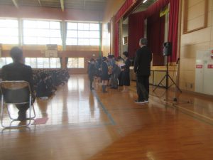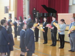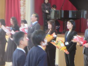 HOME > 学校紹介 > イベントギャラリー > 辞任式 辞任式 入力日2026年3月24日 閲覧数130 3月24日(火)、金立小学校の修了式に引き続いて、辞任式が行われました。 今年度末の人事異動で、金立小学校では、15名の先生が、転出や退職をされることとなりました。この日は、12名の先生方の辞任式が行われました。(残りの3名は、本務校で辞任式に参加されました。) 【転退職される先生方の入場】 【校長先生からの紹介と転退職される先生方からの挨拶】 【児童代表の言葉】 【児童代表による花束贈呈】 一覧へ戻る 次へ