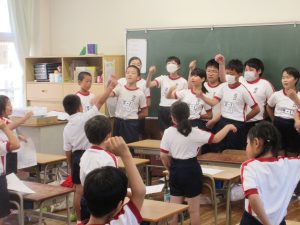9月13日(金)から、朝の会の時間に、応援リーダーの子どもたちが1、2年生の学級や3、4年生の学級に応援の指導を行っています。