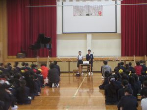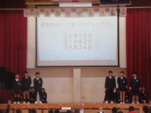 6年生ありがとう集会に向けて、各学年・各学級で取り組んできたことを紹介しました。