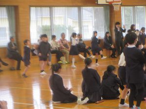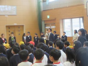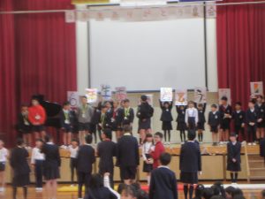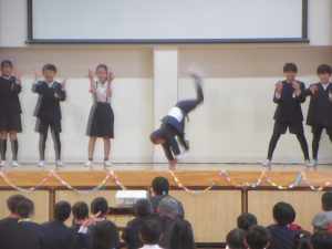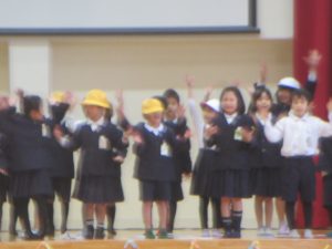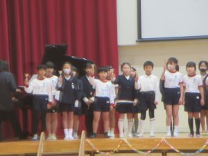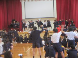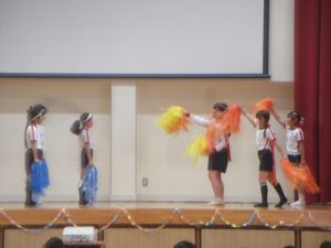 子どもたちの指揮と伴奏により「大切なもの」を2部合唱で歌いました。それから、全員で、「ジャンボリ ミッキー!」をノリノリで踊りました。6年生も巻き込んで、とっても盛り上がりました。