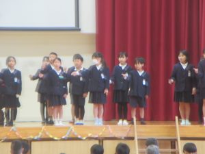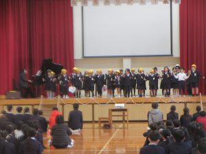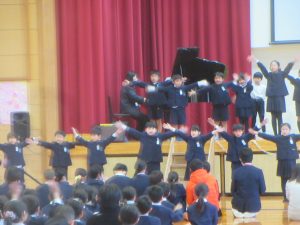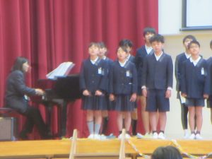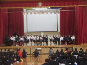 6年生との思い出や感謝の気持ちを伝え、「にじ」を歌いました。