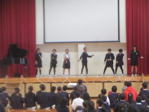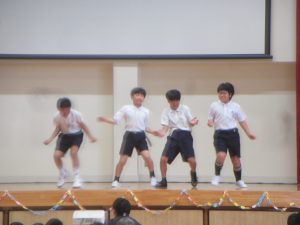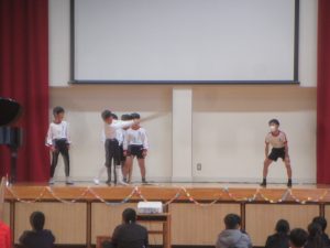 5年生は、ダンス、お笑い、クイズ、「ルージュの伝言」の音楽演奏と多彩な発表でした。