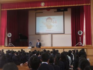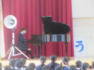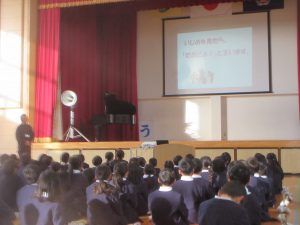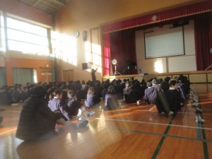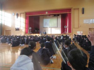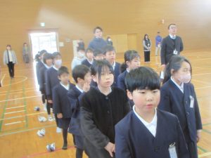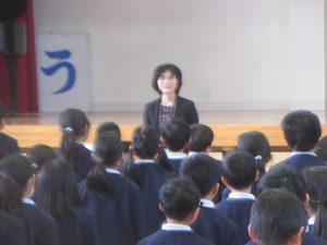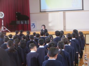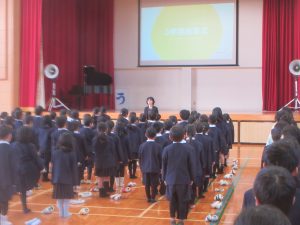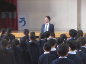 寒い中でしたが、子どもたちは一生懸命に校長先生や三好先生のお話を聞いていました。