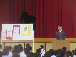 周りの人への思いやりの心、慮ることができる心の大切さについて、全校の子どもたちにわかりやすくお話しいただきました。