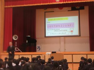 12月24日(水)の終業式後の生活のお話では、三好先生から、「火遊びをしないこと」「不審者に気をつけること」「交通事故に気をつけること」についてのお話がありましたね。
