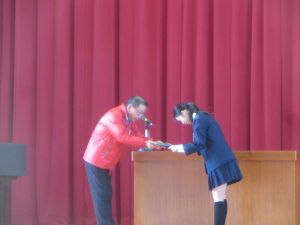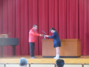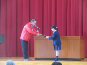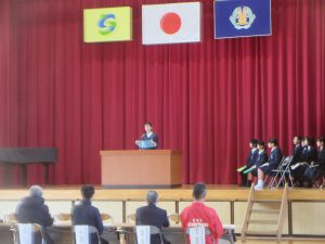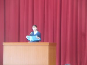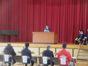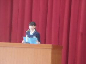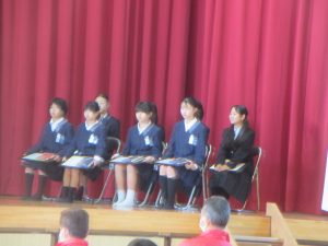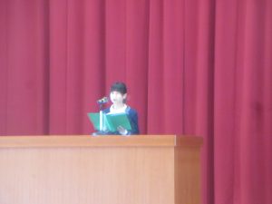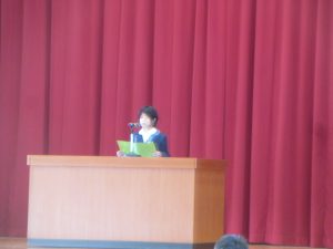 この後、金立小学校を卒業した金泉中学校の生徒4人が発表してくれました。