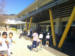 朝夕は随分涼しくなりました。しかし、運動会の練習があっている日中は酷暑の頃に比べると随分暑さも和らぎましたが、まだまだ日差しも強く暑さもあります。そこで、児童用玄関の入り口に、事務室の先生方にミストシャワーを設置していただきました。おかげで、練習の終わりには、子供たちがミストを浴びながら、「涼しい」という声がたくさん聞かれました。