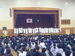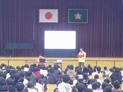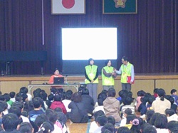 HOME > 学校の近況 > 学校の近況 > 人権集会 12月 人権集会 12月 入力日2025年12月15日 内容 今日は、人権擁護委員会と役場の方に来校いただいて、多様性について学びました。特別ゲストの人権まもる君も登場し、会場が盛り上がりました。人権擁護委員会の方からは人権についてのお話があり、その後にはアニメーションを見て児童は勉強をしました。うさぎさんがりすさんに意地悪をする物語で、児童にとって分かりやすいものでした。最後に各クラスの代表が、人権についての標語を紹介して集会を終えることができました。 人権擁護委員の方の講話 じんけんまもる君登場 DVDの視聴 クラスの標語発表 閲覧数69 前へ 次へ