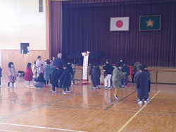 HOME > 学校の近況 > 学校の近況 > 基山盆踊り体験 3年 基山盆踊り体験 3年 入力日2026年2月2日 内容今日は、講師に福永先生をお迎えして、基山の盆踊りを教えていただきました。福永先生から盆踊りにまつわる由来や歴史について説明がありました。その後には、着物に着替えて盆踊りに挑戦しました。子供たちは、福永先生の美しい動作に合わせるように踊りました。きっとの夏の盆踊りでは、基山の盆踊りを披露してくれるでしょう。寒い中、講師を務めていただいた福永先生、また参観いただいた保護者の皆様ありがとうございました。 最後は、みんなで盆踊りを踊って終わりました。 閲覧数14 前へ