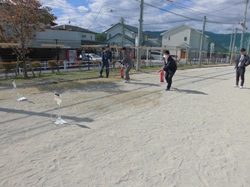 - 内容 - 今日は、火災避難訓練に全校で取り組みました。全学年、事前にビデオを鑑賞し、火災に会った時の対応や行動の仕方などについて学びました。当日は、基山消防署の隊員の方に来校いただきました。火元を家庭科室に設定して、訓練を実施しました。火災報知器を作動させ、実際に火事が起きた時と同じ状況にして、訓練を実施しました。火事発生のサイレンと共に、緊急放送で避難指示が出されました。子供たちは、担任に誘導されながら、口をハンカチで覆いながら、私語もなく、「おさない、かけない、しゃべらない、もどらない」を守って運動場へ避難することができました。消防署の方からは、避難する態度がよかったとお褒めの言葉をいただきました。消火器訓練では、先生方に水消火器を使った訓練に取り組んでもらいました。       - 子供たちは避難を終え、教室に戻ったところで、ビデオ配信で消防署の方から訓練に関する講話を、教頭先生からの講評を視聴しました。消防署の方からは、火遊びをしない、防火週間があるので気を付けること、いつも「おかしも」を意識してほしいとの話がありました。教頭先生からは、いつ、どこで火事に会うのかわからないので、自分の命は自分で守ることのできる力を育ててほしいという話がありました。