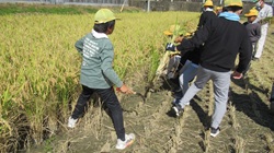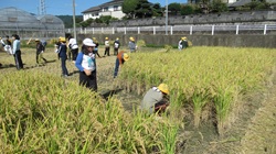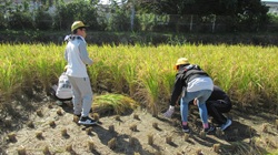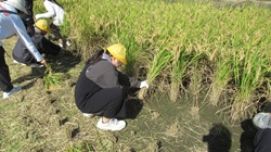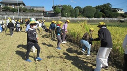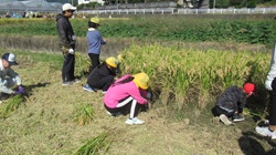 HOME > 学校の近況 > 学校の近況 > 5年稲刈り 10月 5年稲刈り 10月 入力日2025年10月29日 内容 今日は、晴天に恵まれ稲刈り日和となりました。6月田植えをした稲がすくすく育ち、収穫の日を迎えました。実りの秋と言われます。子供たちは、穂を垂れた稲を一株ずつ丁寧に刈り取ることができました。ここまでお世話をしていただいた、地域の方、農家の方に感謝いたします。 閲覧数14 前へ 次へ