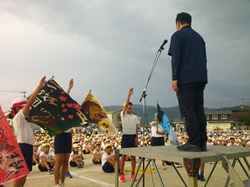 参観していただいた保護者、並びに地域の皆様、そして来賓の皆様、子供たちへの温かいご声援ありがとうございました。勝敗は尽きましたが、どの団も6年生が中心となって一致団結し、スローガンの言葉通りに一生懸命にがんばる子供たちの姿が運動場にありました。