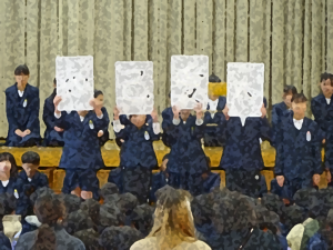HOME > 子どもたちの姿 > 子どもたちの姿 > 基里っ子集会 基里っ子集会 入力日2025年12月10日 閲覧数32 12月4日、基里っ子集会を行いました。 子どもたちは、この日のために練習を重ね、歌や劇、合奏などに一生懸命取り組んできました。当日は、緊張しながらも堂々と発表し、成長した姿を見せてくれました。 ご来校いただいた皆様の温かい拍手は、子どもたちの大きな励みになりました。日頃から子どもたちの活動を温かく見守っていただき、ありがとうございます。 一覧へ戻る 次へ