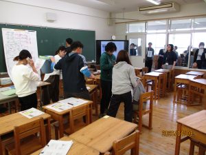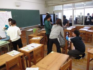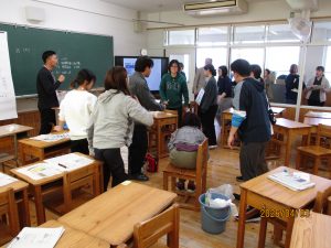 子ども達がまだ春休みの頃、職員は新学期の準備を進めていました。その中の1つが4月3日の「食物アレルギー対応研修」です。職員全員で食物アレルギーとはどんなものなのか、どういう症状が出るのか、いざという時にはどんな対応をとればいいのか、そして、何よりもしものことが起こらないために気をつけることは何なのか…。春休み中に時間を設けて、みんなでしっかり研修をしました。実際に職員が役割演技をして、実際に対応する様子です。周りの職員はそれを見て、良い点や課題点を話し合いました。巨勢小学校の職員は、子ども達が「安心・安全」に生活するために必要な研修をこれからも進めていきます。