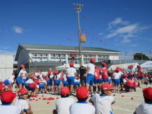 10/26(日)、晴天の絶好の天気のもと、巨勢小学校運動会が行われました。どの学年も練習した成果をしっかりと発揮していました。1,2年生のかわいく元気な「表現ダンス」、3,4年生のチームワークを発揮していた「台風の目」、5,6年生の力強くて凛々しい「フラッグでの団体演技と大玉送り」…。加えて、かけっこ(徒競走)やレク走(応用走)、リレー、全員玉入れ、応援合戦とどれも力のこもったものになり、まさに今年のスローガン「盛り上がれ!みんなで楽しむ150年目の運動会」の通りでした。保護者の皆様、あたたかい応援、ありがとうございました。