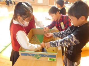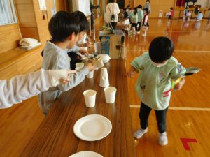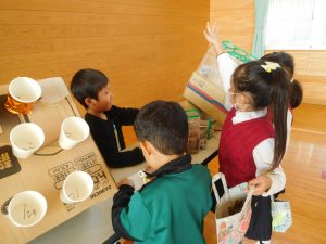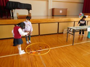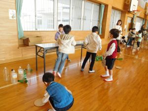 11/21(金)、1年生が校区の巨勢保育園、錦華幼稚園の年長さんたちを招いて交流会が行われました。内容は、1年生が生活科の学習で行っている「おもちゃまつり」です。さまざまな楽しいおもちゃを作り、お店屋さんのように体育館で園児のみなさんをもてなします。1年生のみんなはそれまでに準備や練習をしっかりしていたので、園児のみんなをしっかり楽しませることができていたようです。少しお兄ちゃんお姉ちゃんになった頼もしい姿を見せてくれました。