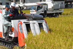 2・3年生はコンバインに乗って収穫して、操作の難しさや効率の良さを実感していました。